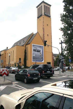 ¸Þ¼¼ ÁøÀÔ·Î °Ç¹° º®¸é¿¡ Çö´ëÀÚµ¿Â÷ ¸Þ°¡Æ÷½ºÅͰ¡ Àü½ÃȸÀå¿¡ À̸£·¶À½À» ¾Ë¸®°í ÀÖ´Ù.