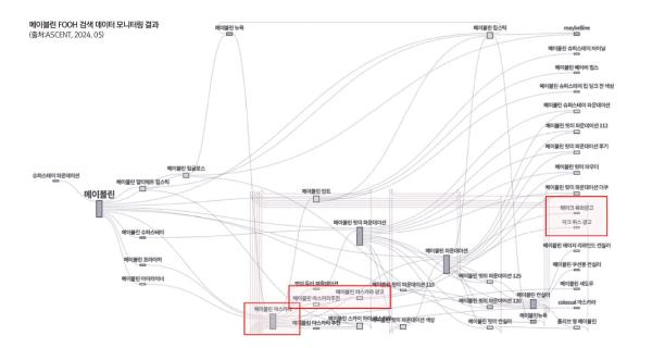¡ã ¸ÞÀÌºí¸° FOOH ¿µ»ó¿¡ ´ëÇØ ±¹³»¿¡¼µµ ¸¶Âù°¡Áö·Î 2023³â 7¿ù¿¡ °Ë»ö·®ÀÌ Áõ°¡Çߴµ¥, 7¿ù ÀÌÀü±îÁö °Ë»ö·®ÀÌ ¾ø¾ú´ø Ű¿öµå ¡®¸ÞÀÌºí¸° ¸¶½ºÄ«¶ó ±¤°í¡¯, ¡®¡¯¸ÞÀÌºí¸° ±¤°í¡® °Ë»ö·®ÀÌ Áõ°¡ÇÏ¿© FOOH ¸¶ÄÉÆÃÀÌ ¼º°øÇÏ¿´À½À» ¾Ë ¼ö ÀÖ´Ù. ÀÌ·¯ÇÑ Å°¿öµå °Ë»ö¿¡ ´ëÇØ ¸®½º´×¸¶ÀεåÇãºí¿¡¼ È®ÀÎÇÑ °á°ú, ¡®¸ÞÀÌºí¸°¡¯ ¡æ ¡®¸ÞÀÌºí¸° ¸¶½ºÄ«¶ó¡¯ ¡æ ¡®¸ÞÀÌºí¸° ¸¶½ºÄ«¶ó Ãßõ¡¯ ¡æ ¡®¸ÞÀÌºí¸° ¸¶½ºÄ«¶ó ±¤°í¡¯ ¡æ ¡®ÆäÀÌÅ© ¿Á¿Ü±¤°í¡¯/¡®ÀÚÅ©¹¿½º ±¤°í¡¯·Î ¿¬°áµÇ´Â ¾Ë ¼ö ÀÖ¾ú´Ù (ASCENT, 2024. 05. 20). FOOH Ä·ÆäÀÎ ÇØ¿Ü »ç·Ê ºÐ¼® ¸ÞÀÌºí¸°(Maybelline) ºê·£µåÀÇ FOOH Ä·ÆäÀÎ È¿°ú. 2023³âºÎÅÍ »õ·Î¿î ±¤°í Æ®·»µå·Î ½ÃÀÛµÈ FOOH Ä·ÆäÀÎÀº ¼Ò¼È ¹Ìµð¾î¿¡¼ ¼ö¹é¸¸ °ÇÀÇÁ¶È¸ ¼ö¸¦ ±â·ÏÇÏ¸ç ¼ÒºñÀÚµéÀÇ À̸ñÀ» ÁýÁß½Ã۰í ÀÖ´Ù. ¾Õ¼ »ìÆìº» FOOHÀÇ Æ¯¼ºÀ» Åä´ë·Î ÃÖ±Ù À̽´°¡ µÇ°í ÀÖ´Â FOOH Ä·ÆäÀÎ ÇØ¿Ü »ç·Ê¸¦ »ìÆìº¸¸é ´ÙÀ½°ú °°´Ù. ¸ÞÀÌºí¸°ÀÇ ·±´ø ÁöÇÏö Ä·ÆäÀÎÀº FOOH¸¦ ´ëÁßȽÃŲ °¡Àå ´ëÇ¥ÀûÀÎ ±¤°í¶ó ÇÒ ¼ö ÀÖ´Ù. ¸¶½ºÄ«¶ó Á¦Ç° ºê·£µå ¸ÞÀÌºí¸°(Maybelline)Àº ‘½ºÄ«ÀÌ ÇÏÀÌ ¸¶½ºÄ«¶ó ÀͽºÇÁ·¹½º¿¡ ž½ÂÇϼ¼¿ä’¶ó´Â Á¦¸ñÀ¸·Î ¸ÞÀÌºí¸° ´º¿å °ø½Ä ÀνºÅ¸±×·¥¿¡ ¿µ»óÀ» ¾÷·Îµå Çß´Ù. ±¤°í ³»¿ëÀº ¼Ó´«½çÀÌ ´Þ¸° ÁöÇÏöÀÌ Áö³ª°¡¸ç º®¸é¿¡ ÀÖ´Â ´ëÇü ¸¶½ºÄ«¶ó¸¦ »ç¿ëÇÏ´Â ¸ð½ÀÀ» ¿¬ÃâÇß´Ù. ÀÌ FOOH Ä·ÆäÀÎ ¿µ»óÀº ¾÷·Îµå ÀÌÈÄ ¼öÀÏ ¸¸¿¡ SNS ä³ÎÀÎ ÀνºÅ¸±×·¥(instagram)¿¡¼ 5,000¸¸ ºä ÀÌ»ó°ú 300¸¸°³ ÀÌ»óÀÇ ‘ÁÁ¾Æ¿ä’¸¦ ¹ÞÀ¸¸ç ¼Ò¼È ¹Ìµð¾î »ó¿¡¼ ±Þ¼ÓÈ÷ È®»êÇß´Ù (Maybelline instagram, 2023. 07. 08). ¸ÞÀÌºí¸° FOOH ¿µ»óÀÌ ¾÷·ÎµåµÈ ÀÌÈÄ, ÇØ¿Ü¿¡¼ 2023³â 7¿ù °Ë»ö·®Àº Àü¿ù ´ëºñ ¾à 6¹è ÀÌ»ó Áõ°¡ÇÏ¿© ¸ÞÀÌºí¸° ¸¶ÄÉÆÃ Ä·ÆäÀÎÀÌ ¹ÙÀÌ·² È¿°ú°¡ ³ô¾Ò´Ù´Â °ÍÀÌ ÀÔÁõµÇ¾ú´Ù. ¸ÞÀÌºí¸° FOOH ¿µ»ó¿¡ ´ëÇØ ±¹³»¿¡¼µµ ¸¶Âù°¡Áö·Î 2023³â 7¿ù¿¡ °Ë»ö·®ÀÌ Áõ°¡Çߴµ¥, 7¿ù ÀÌÀü±îÁö °Ë»ö·®ÀÌ ¾ø¾ú´ø Ű¿öµå ‘¸ÞÀÌºí¸° ¸¶½ºÄ«¶ó ±¤°í’, ‘’¸ÞÀÌºí¸° ±¤°í‘ °Ë»ö·®ÀÌ Áõ°¡ÇÏ¿© FOOH ¸¶ÄÉÆÃÀÌ ¼º°øÇÏ¿´À½À» ¾Ë ¼ö ÀÖ´Ù. ÀÌ·¯ÇÑ Å°¿öµå °Ë»ö¿¡ ´ëÇØ ¸®½º´×¸¶ÀεåÇãºí¿¡¼ È®ÀÎÇÑ °á°ú, ‘¸ÞÀÌºí¸°’ → ‘¸ÞÀÌºí¸° ¸¶½ºÄ«¶ó’ → ‘¸ÞÀÌºí¸° ¸¶½ºÄ«¶ó Ãßõ’ → ‘¸ÞÀÌºí¸° ¸¶½ºÄ«¶ó ±¤°í’ → ‘ÆäÀÌÅ© ¿Á¿Ü±¤°í’/‘ÀÚÅ©¹¿½º ±¤°í’·Î ¿¬°áµÇ´Â ¾Ë ¼ö ÀÖ¾ú´Ù (ASCENT, 2024. 05. 20).