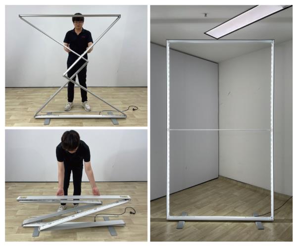 (ÁÖ)ÆÛ½ºÆ®¿øÄÚ¸®¾Æ°¡ Àü½Ãȸ ¹× ÆË¾÷ ¸ÅÀå¿¡¼ °£ÆíÇÏ°Ô È°¿ëÇÒ ¼ö ÀÖ´Â ‘¿øÅÍÄ¡ ÆÐºê¸¯ ¶óÀÌÆ® ½ºÅĵ咸¦ »õ·Ó°Ô ¼±º¸¿´´Ù. ÀÌ Á¦Ç°Àº º°µµÀÇ °ø±¸ ¾øÀ̵µ ´©±¸³ª ¼Õ½±°Ô ¼³Ä¡ÇÒ ¼ö ÀÖ´Â °ÍÀÌ °¡Àå Å« Ư¡ÀÌ´Ù. ¼³Ä¡ ½Ã°£Àº ¾à 1~2ºÐ ³»·Î, ÇöÀå ¿î¿µÀÇ È¿À²¼ºÀ» Å©°Ô ³ôÀÏ ¼ö ÀÖ´Ù. ¶ÇÇÑ ¹ÙÄû°¡ ÀåÂøµÈ Àü¿ë °¡¹æÀÌ ÇÔ²² Á¦°øµÇ¾î À̵¿°ú º¸°üÀÌ ¿ëÀÌÇϸç, ÀæÀº Àå¼Ò º¯°æÀÌ ÇÊ¿äÇÑ Àü½Ã ¹× ÇÁ·Î¸ð¼Ç ȯ°æ¿¡¼ ³ôÀº Ȱ¿ëµµ¸¦ ±â´ëÇÒ ¼ö ÀÖ´Ù. Á¦Ç°Àº ¾ç¸é ŸÀÔÀ¸·Î Á¦ÀÛµÇ¾î °ø°£ Ȱ¿ëµµ¸¦ ±Ø´ëÈÇßÀ¸¸ç, Ãâ·Â¹° »çÀÌÁî´Â 850×2,000mm¿Í 1,500×2,500mm µÎ °¡Áö ¿É¼ÇÀ¸·Î Á¦°øµÈ´Ù. À̸¦ ÅëÇØ ´Ù¾çÇÑ ±Ô¸ðÀÇ Àü½Ã ºÎ½º ¹× ÆË¾÷ °ø°£¿¡ ¸ÂÃç À¯¿¬ÇÏ°Ô Àû¿ë °¡´ÉÇÏ´Ù. ¹®ÀÇ: (ÁÖ)ÆÛ½ºÆ®¿øÄÚ¸®¾Æ Tel. 010-6308-5211