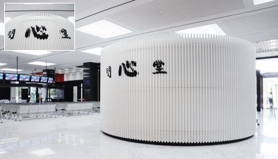 ±×¸®°í ½ÅÈ«°æ ±³¼ö´Â ¡°³»ºÎ °ø°£À» ¾ÆÆ®È¦ °³³äÀ¸·Î ²Ù¹Î °ÍÀº ±âÁ¸ °æÁ¤Àå À̹ÌÁö¸¦ ¿Ïº®ÇÏ°Ô µÚÁý¾î³½ ¿ª¹ß»óÀ̾ú´Ù. ±×¸®°í Ȧ Áß¾Ó¿¡ ÈÞ½ÄóÀÎ ¸í½É´çÀ» µÎ¾î ³»ºÎ¿¡ Àü½ÅÀÇÀÚÀÎ ¿¡±×ü¾î¸¦ µÎ°í LCD¸ð´ÏÅ͸¦ ÅëÇØ °æÁ¤°ú »ó°ü¾ø´Â ¿µ»óÀ» »ó¿µÇØ °æÁ¤ ¶§¹®¿¡ Çà¿© »ý±æ¼ö ÀÖ´Â ½ºÆ®·¹½º¸¦ Ç®°í Æí¾ÈÇÑ ¸¶À½À» °¡Áú ¼ö ÀÖ°Ô Çß´Ù. ¸í½É´çÀº ¿å½É°ú °¹ÚÁõ¿¡¼ ¹þ¾î³ ÇѾøÀÌ Á¶¿ëÇÑ °ø°£ÀÌ¸ç ¸®ÇÁ·¹½Ã Refresh ¶Ç´Â ¸®Â÷Áö Recharge ¸¦ À§ÇÑ °÷ÀÌ´Ù¡±¶ó°í Çß´Ù.