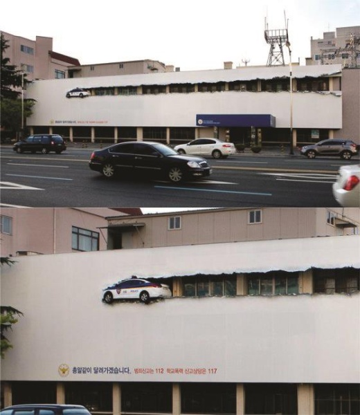 °Ç¹° ¿Üº®¿¡ 500§³ ±Ô¸ðÀÇ Á÷»ç°¢Çü ´ëÇü ±¤°íÆÇÀ» ºÙÀÎ µÚ ³ôÀÌ 6∼7£í ÁöÁ¡¿¡¼ °æÂûÂ÷°¡ ÃѾËÀ̳ª ÀüÅõ±âó·³ â°øÀ» °¡¸£¸ç ´Þ·Á°¡´Â ¸ð½ÀÀ» ¿¬ÃâÇß´Ù.ÇÏ´ÃÀ» ³ª´Â °æÂûÂ÷°¡ ±¤°íÆÇÀ» ÂõÀ¸¸ç ºñÇàÇÏ´Â °Íó·³ º¸À̱⵵ ÇÑ´Ù.