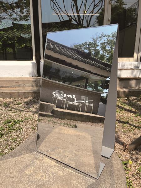Ä«Æä »ç¼ÛÀÇ °£ÆÇÀº ÃâÀÔ¹® »ó´Ü¿¡ ¹èÄ¡ÇÑ ¾ÆÅ©¸± ¹Ú½º »çÀΰú À©µµ±×·¡ÇÈÀ¸·Î °£°áÇÏ°Ô À̸§À» Ç¥ÇöÇÑ °ÍÀÌ ÀüºÎ´Ù. ÇÏÁö¸¸ ¿ÜºÎ¿¡¼­µµ ÇÑ´«¿¡ º¸ÀÌ´Â À¯¸®·Î ¸¶°¨ÇÑ °ø°£Àº ±×¾ß¸»·Î Ä«Æä »ç¼ÛÀ» ¾Ë¸®´Â »çÀÎ °°Àº ¿ªÇÒÀ» ÇÑ´Ù. ±×¸®°í ¾Õ¸¶´ç¿¡ ¸¶·ÃÇÑ Àº»ö ÀÔ°£ÆÇ¿¡ À¯¸®·Î ¸¶°¨ÇÑ ½Ã±×´Ïó °ø°£ÀÌ °Å¿ïó·³ ºñÄ¡´Â °Íµµ ÀλóÀûÀÌ´Ù. ¸¶Ä¡ ÀϺη¯ ÀǵµÇÑ µíÇÑ ³¦À¸·Î ÀÔ°£ÆÇÀ» ¼¼¿öµÐ °¢µµµµ ¹¦Çؼ­ ¿©·¯¸ð·Î Èï¹Ì·Ó´Ù.