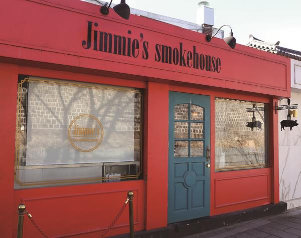 ¡ã ¡®Áö¹Ì ½º¸ðÅ©ÇϿ콺¡¯´Â ÀͽºÅ׸®¾îºÎÅÍ °·ÄÇÏ°Ô ½Ã¼±À» »ç·ÎÀâ´Â´Ù. °£°áÇÑ ºÐÀ§±âÀÇ °¡°Ô°¡ ¹Ýº¹µÇ´Â ¼¼ø¶ó±æÀ» °È´Ù°¡ ÀÌ·± ¿ø»öÀÇ °ø°£À» º¸¸é ´«±æÀÌ °£ °¥ ¼ö°¡ ¾ø´Ù. ±×¸®°í Ãø¸é¿¡ µ¹Ãâ°£ÆÇÀ¸·Î µÅÁö ¸ðÇüÀ» ¹èÄ¡ÇØ °ø°£ÀÇ ¾ÆÀ̵§Æ¼Æ¼¸¦ ±¸Ã¼ÈÇϰí ÀÖ´Ù.