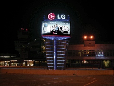 ¹ÀÇî°øÇ×À» °¡µæ ¸Þ¿î â¹®·¡ÇÎ LGÀüÀÚ´Â 2006³â µ¶ÀÏ ¿ùµåÄÅ ±¤°íÀü·«ÀÇ ÀÏȯÀ¸·Î Çö󽺸¶ TV 173´ë¸¦ ÇÁ¶ûũǪ¸£Æ® ±¹Á¦°øÇ× 140¿© ÃâÀÔ±¸ Àüü¿¡ ¼³Ä¡Çß´Ù. 2004³â 2¿ù¿¡ 111´ë¸¦ ¼³Ä¡Çß°í, 2005³â 9¿ù 60´ë¸¦ Ãß°¡·Î ¼³Ä¡ÇØ 2005³â 11¿ùºÎÅÍ ½Ã½ºÅÛÀ» °¡µ¿ÇÔÀ¸·Î½á 2006³â µ¶ÀÏ¿ùµåÄÅÀ» Áß°èÇß´Ù. ¹æ¼Û ³»¿ëÀº ÇÁ¶ûũǪ¸£Æ® °øÇ×´ç±¹ÀÌ µµÀÌÄ¡ º§·¹(Deutsch Welle)¶ó´Â TV¹æ¼Û»ç¿Í °è¾àÀ» ü°áÇÔÀ¸·Î½á ½Ç½Ã°£ ´º½º¿Í ³¯¾¾ Á¤º¸ ±×¸®°í 2006 µ¶ÀÏ¿ùµåÄÅ ±â°£ Áß¿¡´Â ¿ùµåÄÅ Ã౸¸¦ Áß°èÇÔÀ¸·Î½á ´«°ú ±Í¸¦ Áñ°Ì°Ô ÇØÁÖ°í ÀÖ´Ù. µ¶Àϳ²ºÎ Á߽ɵµ½ÃÀÎ ¹ÀÇî¿¡µµ LGÀüÀÚÀÇ ¿ùµåÄÅ ¸¶ÄÉÆÃÀº ²÷ÀÌÁö ¾Ê´Â´Ù. ¹ÀÇî°øÇ× Á¦2Å͹̳ÎÀÇ Á¤¸é À¯¸®Ã¢ º®¸é¿¡ µ¶ÀÏ ¿ùµåÄÅ Ã౸ÆÀ Á¤¿¹ ¸â¹ö 11¸í°ú °¨µ¶ Ŭ¸°½º¸¸À» ¸ðµ¨·Î ·¡Çα¤°í¸¦ ¼³Ä¡Çß´Ù. °¡·Î°¡ 173m, ¼¼·Î°¡ 19mÀÎ ÀÌ ·¡Çα¤°í´Â ¹ÀÇî°øÇ×ÀÇ Áß½É Ã»»ç·Î Å͹̳ΠÀü¸é¿¡´Â ¹ÀÇî °æ±âÀåÀ» ¿¬»óÄÉ ÇÏ´Â ´ëÇü ±¤ÀåÀÌ ÀÖ°í ÀÌ ±¤ÀåÀ» °¡·ÎÁú·¯ °¡¸é Á¦ 1Å͹̳ΰú ÁöÇÏö ¿ª»ç°¡ ÀÖ¾î¼ ¹ÀÇî°øÇ×ÀÇ ¾ó±¼°ú °°Àº Àå¼Ò¿¡ ¼³Ä¡Ç߱⠶§¹®¿¡ ±× È¿°ú°¡ ´ë´ÜÇÏ´Ù. À̹ø ·¡Çα¤°í ¿ª½Ã ¾ÖµåºñÀü¿¡¼ Á¦ÀÛ, ¼³Ä¡¸¦ ´ã´çÇߴµ¥ °øÇ× ´ç±¹Àº ¹°·Ð ¹ÀÇî½Ã µî¿¡¼µµ ¿ùµåÄÅ ¿±â¸¦ ¶ß°Ì°Ô ´Þ±¸´Â ¼º°ú¹°À̶ó¸ç Å« È£ÀÀÀ» ¾ò¾ú°í, °øÇ×À» ¹æ¹®ÇÏ´Â À̵éÀÇ ¹ß°ÉÀ½À» ¸ØÃß°Ô ÇÏ´Â µî ³ôÀº ±¤°íÈ¿°ú¸¦ º¸À̰í ÀÖ´Ù. À¯¸®Ã¢°ú ⹮Ʋ¿¡ ÇÔ²² ¼³Ä¡Çߴµ¥ â¹®¼ýÀÚ¿¡ ¸ÂÃç 53ÀåÀ¸·Î ³ª´² °¡·Î 3.3m, ¼¼·Î 19mÀÎ ½Ç»ç¿¬Ãâ¹° ÃÑ 55ÀåÀ» ÀÌ¾î ºÙ¿´´Ù.