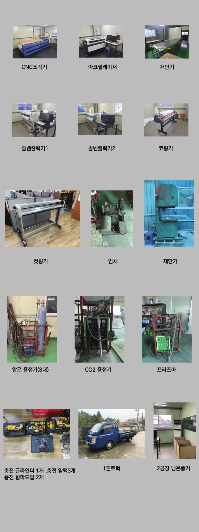 4. ¹°Ç°¼³¸í : cncÁ¶°¢±â 1´ë, ¾ÆÅ©¸± ·¹ÀÌÀú 1´ë, ¼Öº¥Ãâ·Â±â 2´ë, ÄÚÆÃ±â1´ë. ÄÆÆÃ±â1´ë, Àç´Ü±â 1´ë, ¾Ë°ï ¿ëÁ¢±â(3 ´ë),ÀÎÄ¡,ÇÁ¶óÁ, Àü±â¿ëÁ¢±â¹× Àâ °ø±¸, »ç¹«¿ë ÄÄÇ»ÅÍ 2´ë µîµî