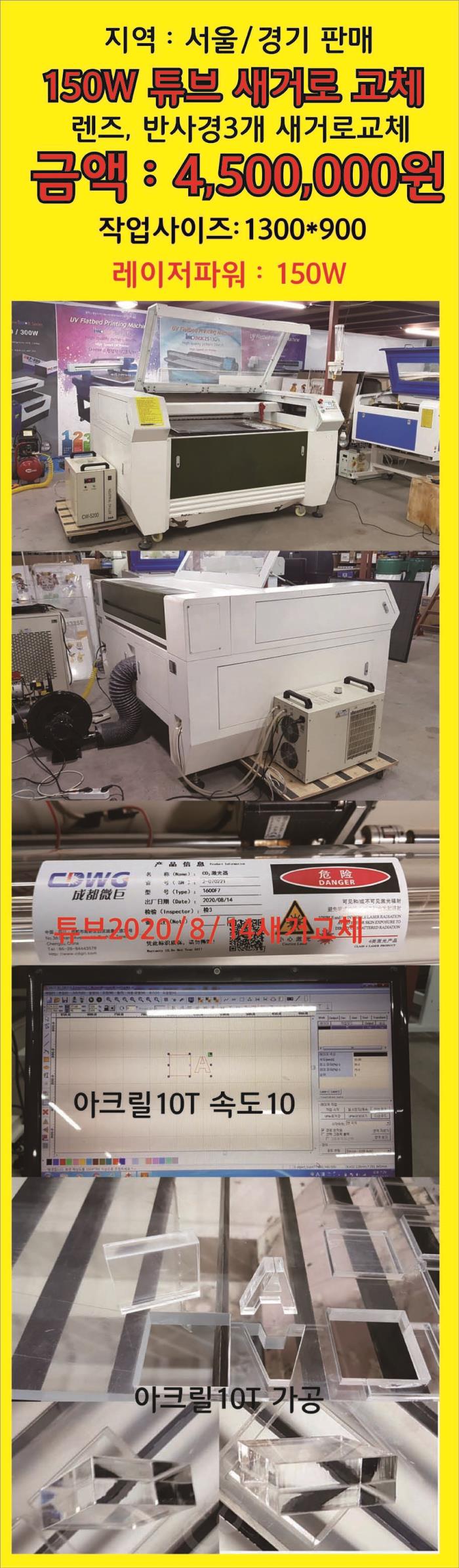 ---------------------------------------------------------------------------------------- 1. Model(¸ðµ¨} : inno1390UX 2. Laser power (·¹ÀÌÀú ÆÄ¿ö) : 150W 3. Working area (ÀÛ¾÷¿µ¿ª) : 1300*900mm 4. Working table structure ¾÷-´Ù¿îÀÛ¾÷Å×ÀÌºí±¸Á¶ 5. Laser tube (·¹ÀÌÀúÆ©ºê Çü½Ä) : CO2 sealed Laser tube, 10.6μm 6. Laser tube type (·¹ÀÌÀúÆ©ºê ŸÀÔ) : p6-220V, AC lnput : 220V 8. Cooling system (³Ã°¢¹æ½Ä) : CW-5200 Circulating water coolUPing system 9. Interface (Åë½Å¹æ½Ä) : DSP offline (with USB, TC/IP , ¿ÍÀÌÆÄÀÌ(¹«¼±) 10. Running software (±¸µ¼ÇÁ·Î±×·½) : RD Laserwork V8 (Ruida) 11. Overail dimension (ÀåºñÅ©±â) : 1547(L)x1872(W)x1060(H)mm --------------------------------------------------------------------------------------